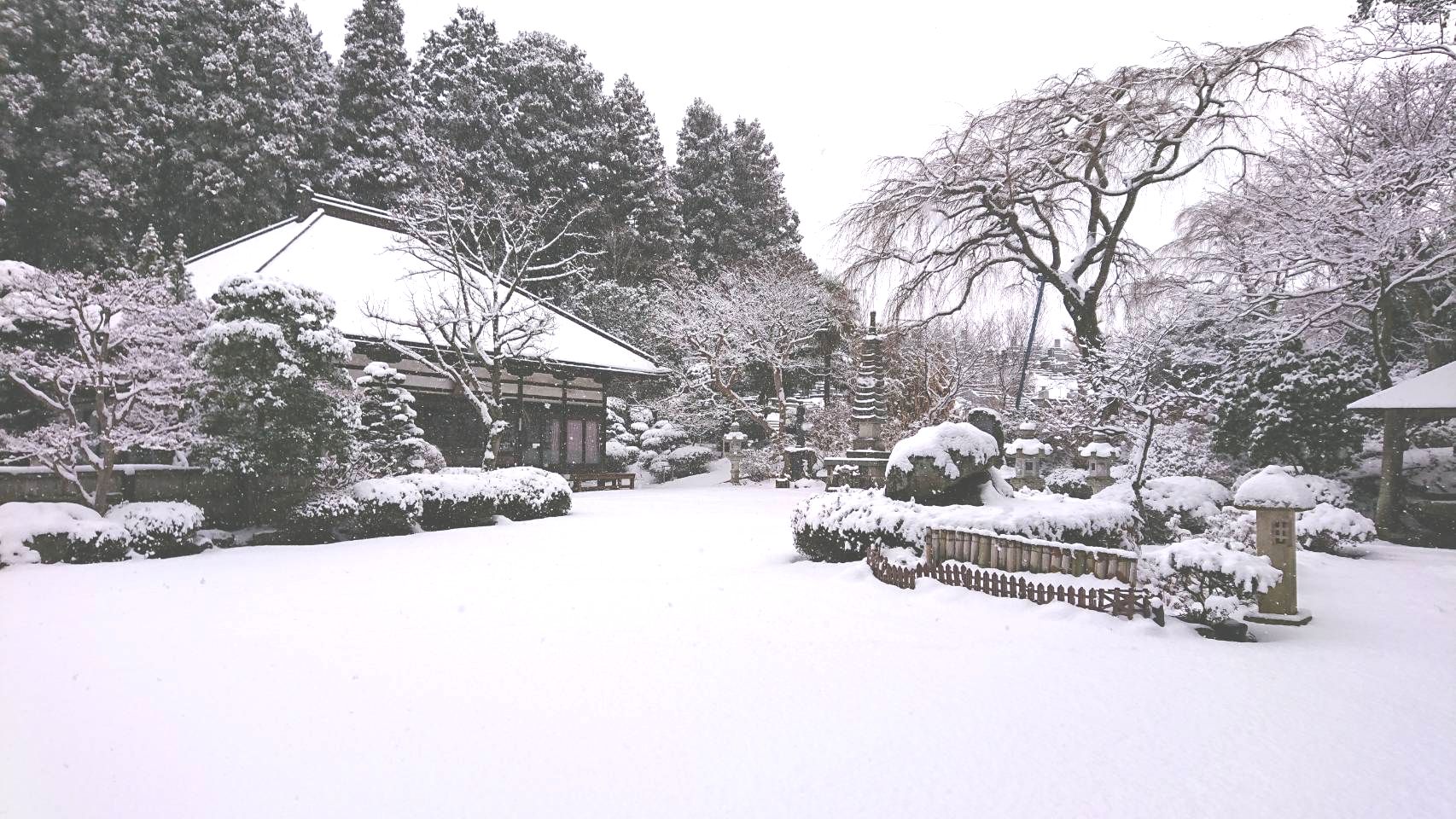 春には滝桜から枝分けされた【しだれ桜】が咲き、夏は深緑の緑に囲まれ、秋彼岸には大百日紅(さるすべり)が咲き、晩秋には境内の木々が錦の如く色づき、冬は雪で一面が白く染まる。